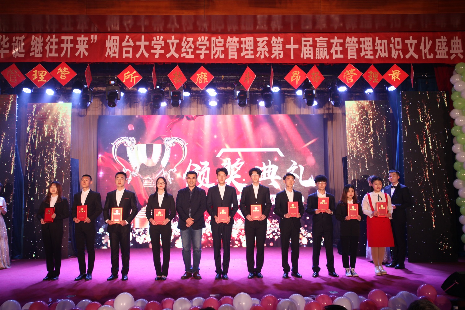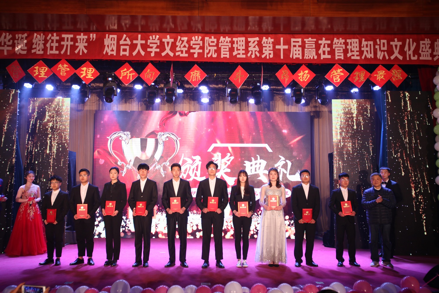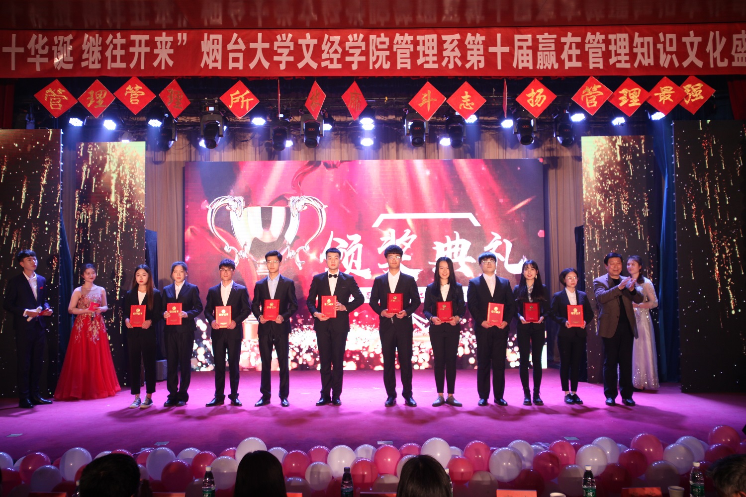 4月24日晚,管理系于一教多功能举办第十届赢在管理知识文化盛典,学院党委副书记李荣梅、院长助理莫红菊、学院管理总督导杜希成、学院工会主席史毅、组宣部部长张琼玉、学工部部长杜娟、招生就业部部长李洁、院团委书记毕海平、信息系党总支副书记申海滨、管理系党总支书记邓之增、副主任王燕、各系团总支书记及管理系全体教师及学生代表共同参加活动。