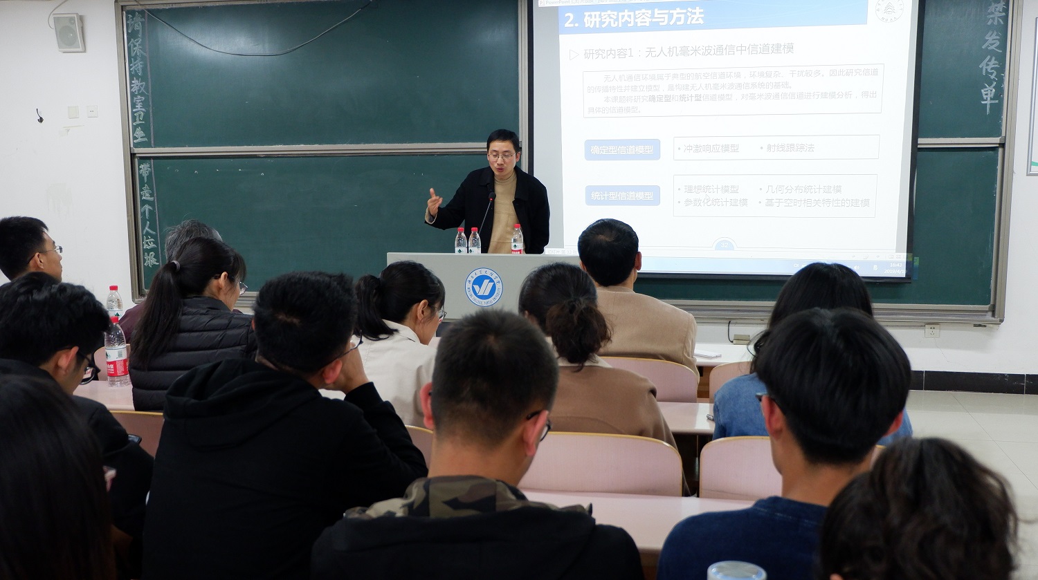 张小飞教授从无人机的研究与应用背景的介绍入手,对毫米波通信的研究现状做了详细介绍,并通过无人机群中毫米波通信的大规模阵列理论与技术实现问题,详细阐述了信道建模,阵列结构设计、波束形成技术的改进、波达方向(DOA)估计以及系统复杂性与有效性的关系等内容。张教授认为,基于毫米波传输的无人机群通信具有很多低频段传输无法比拟的优势,开展无人机毫米波通信阵列天线技术研究,攻克无人机毫米波通信阵列信号处理中若干关键技术,无人机毫米波通信阵列天线技术研究,将为我国无人机群毫米波通信系统的发展提供有力支撑。在自由交流环节中,与会的老师和学生纷纷就自己在专业教学及学习中遇到的问题与张教授进行了热烈交流。张教授深厚的学术功底、严谨的研究风格、对科学问题的提炼方法以及应用与创新研究精神,深深感染着每一位参会师生,报告会在热烈的掌声中顺利结束。