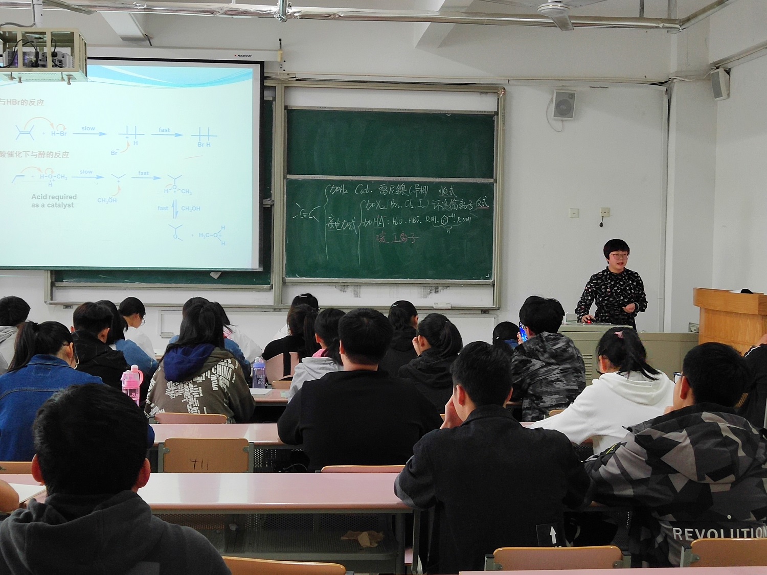 4月19日上午,初晓辉老师于二教511教室进行了第一堂公开观摩课,此次讲授课程为《有机化学》。为了让学生更轻松的理解课程内容,初晓辉老师课前做了充足的准备工作,利用简单明了的PPT文稿,采取启发式、参与式等教学方法,将理论与实践有机结合,用幽默诙谐的授课方式将晦涩难懂的知识难点进行诠释,学生听课状态饱满,课堂氛围非常活跃,师生互动频繁,教学效果良好,培养了学生主动性学习思维。