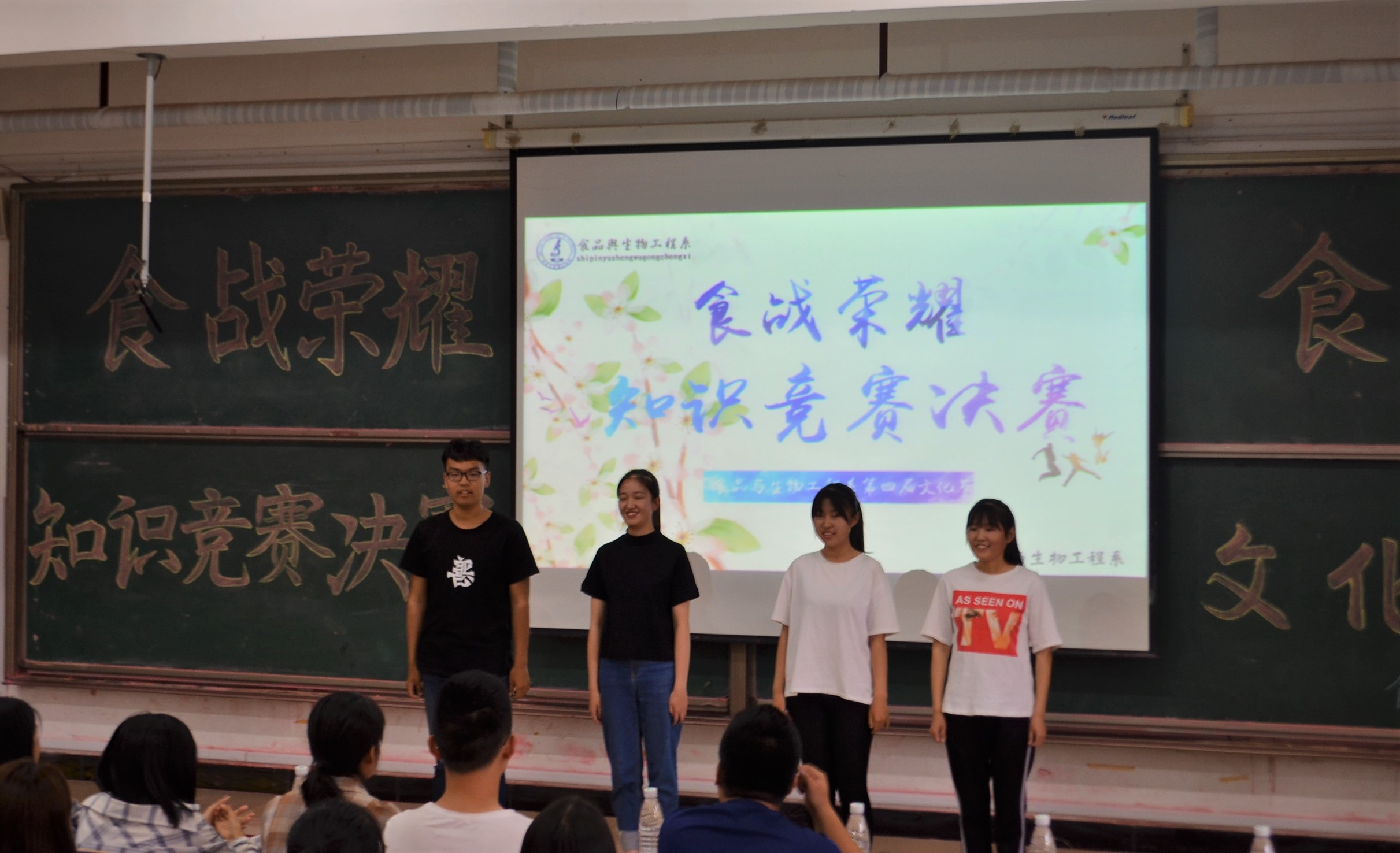 5月31日晚六点半,食品系于一教101举办“青春飞扬,食战荣耀”知识竞赛,团总支学生副书记卢铭源,学生会主席团担任评委,大一各班学生到场观看。