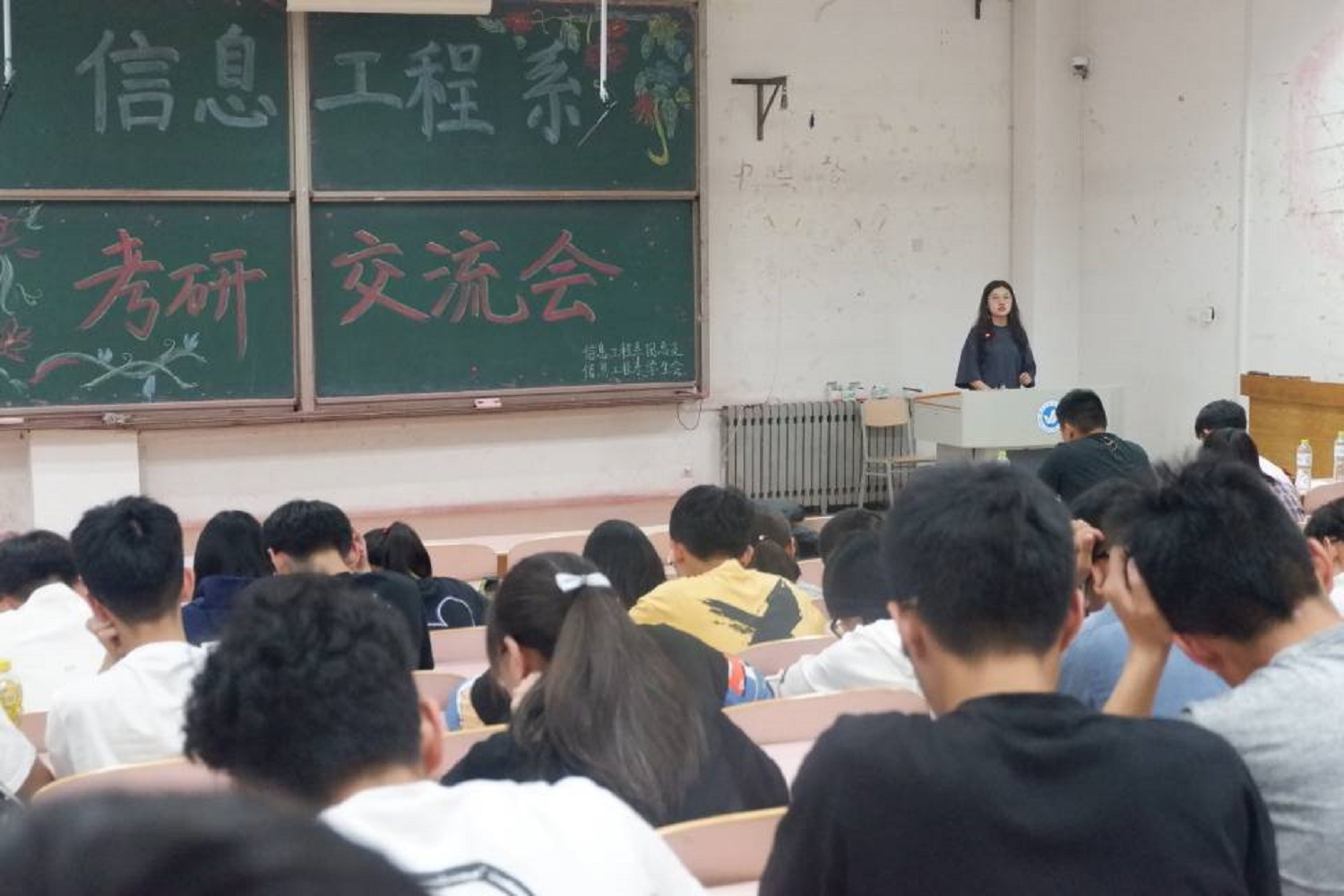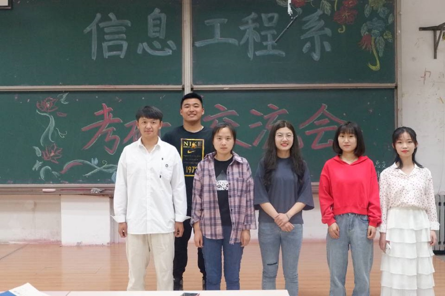 为进一步提高学生的考研热情,明确考研目标,了解前沿考研形势,增强考研斗志,5月23日下午五点半,信息工程系在二教115举办2020届学生考研交流会。交流会邀请房浩、王凯、董亚辉、王怀营、亓文静、王凯丽、王然等七名2019届考研优秀学生开展考研经验交流,信息工程系2016级约100名学生参与经验交流。