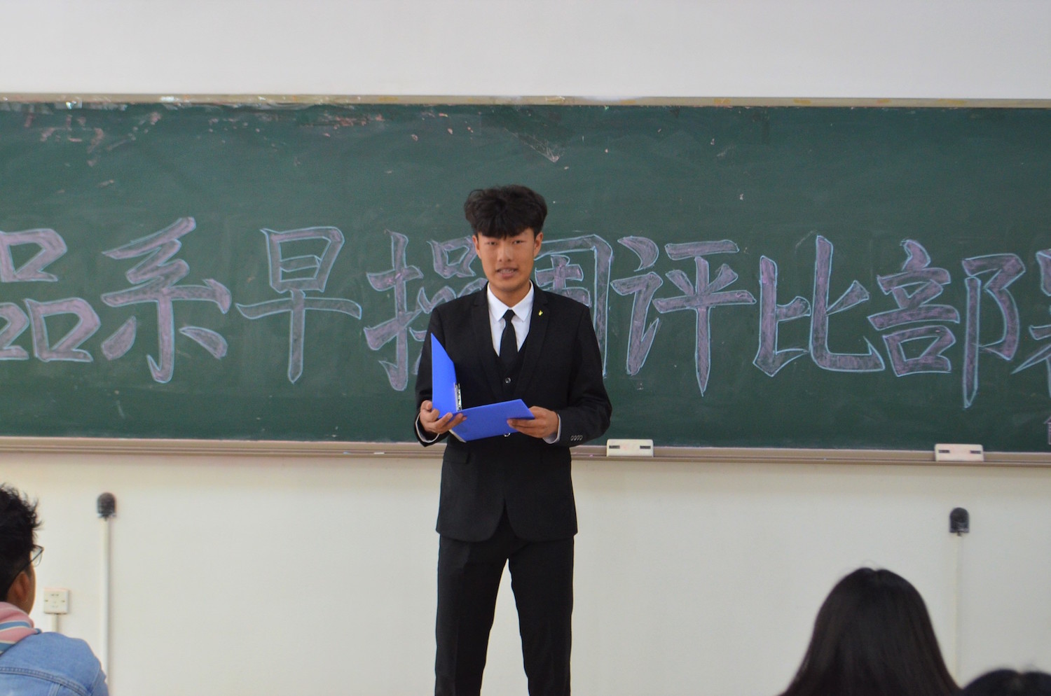 10月26日下午,食品系于一教118举行“爱青春,爱运动,爱健康”早操评比月活动。特邀院自律部张雪,翟渊航到场指导,食品系自律部部长胡宇航,体育部部长许瀚文参加。自律部副部任可为主持。