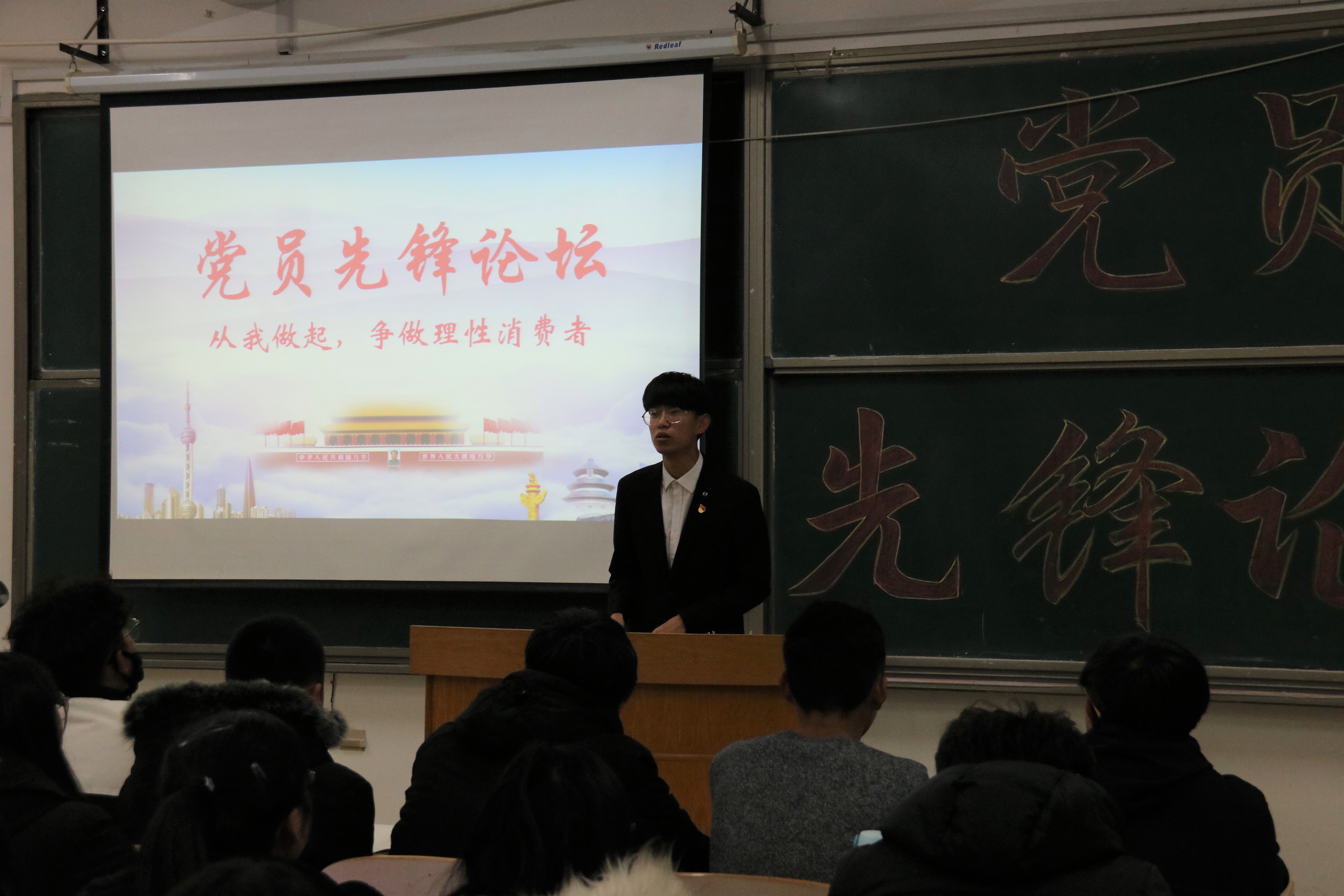 整期活动围绕“从我做起,争做理性消费者”展开讨论。论坛现场,徐成涛通过播放视频的形式向同学们展示当代大学生消费行为、消费观念,并就大学生生活费金额、消费用途、如何看待大学生信用贷款为出发点进行互动交流,同学们畅所欲言,各抒己见,充分展现出当代大学生积极向上的精神风貌。现场气氛热烈,掌声雷鸣。自由交流后,发起人徐成涛以“理性消费”进行总结,明确大学生要具备自我教育、自我约束能力,形成科学消费、适度消费、计划消费、理性消费的正确观念,期望同学们要全面发展,不断提高自身素质,最后他送给同学们一句话:有思想、会思考,就会无畏远方。