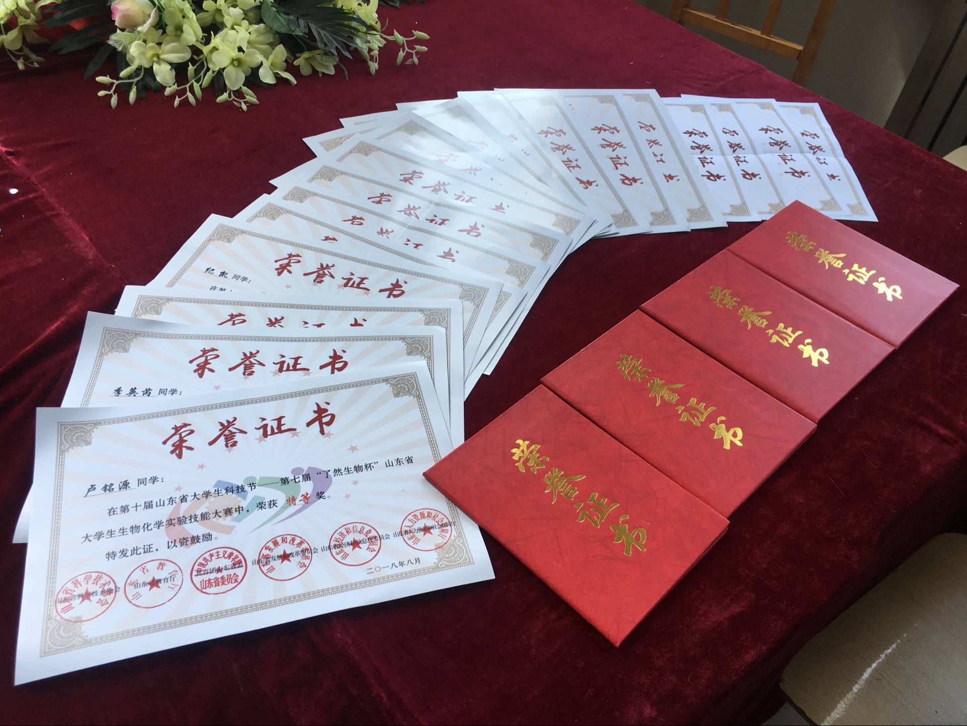 2018年9月22日~23日,第十届山东省大学生科技节系列赛事活动之----大学生生物学教学技能大赛在滨州学院举行, 我院食品与生物工程系在姜齐永老师带队下,4名同学参赛,斩获一等奖2项,二等奖2项的优异成绩。