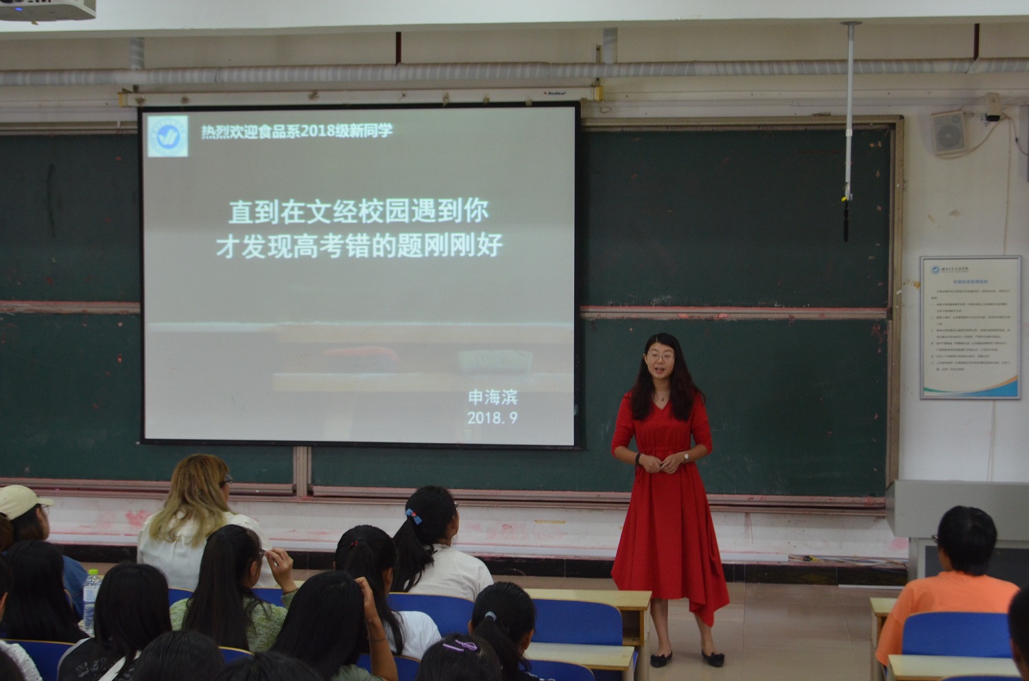 9月14日上午,食品系于一教101教室开展校情校史及文明修身教育。食品系党支部副书记申海滨担任主讲人,大一新生到场聆听。