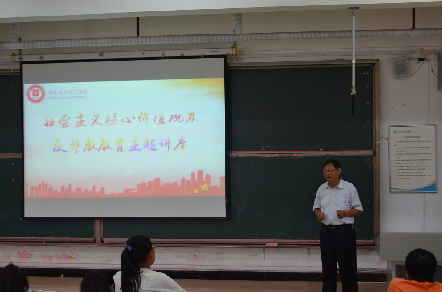为加深食品系学子对社会主义核心价值观的理解,抵御不良思想文化的冲击。9月14日上午,食品系于一教101教室为18级新生举办“社会主义核心价值观及反邪教”教育专题讲座,食品系党支部书记王少辉担任主讲人。