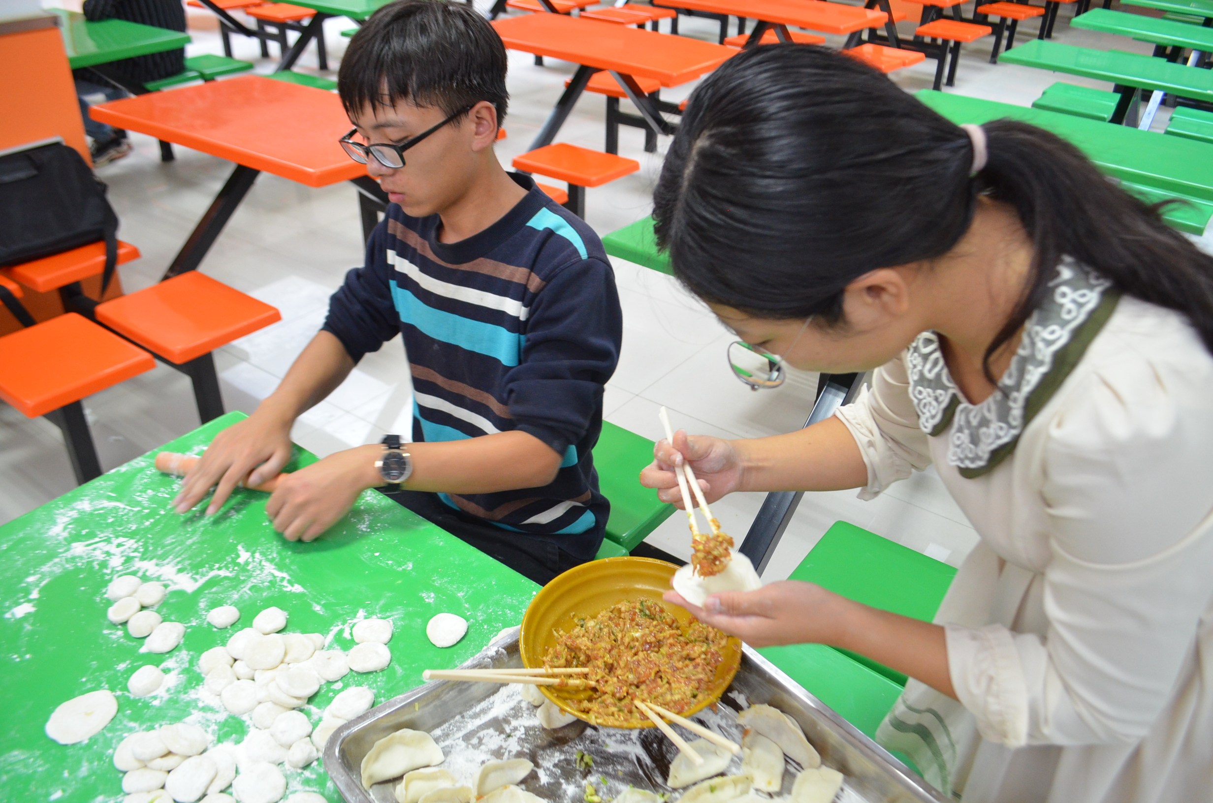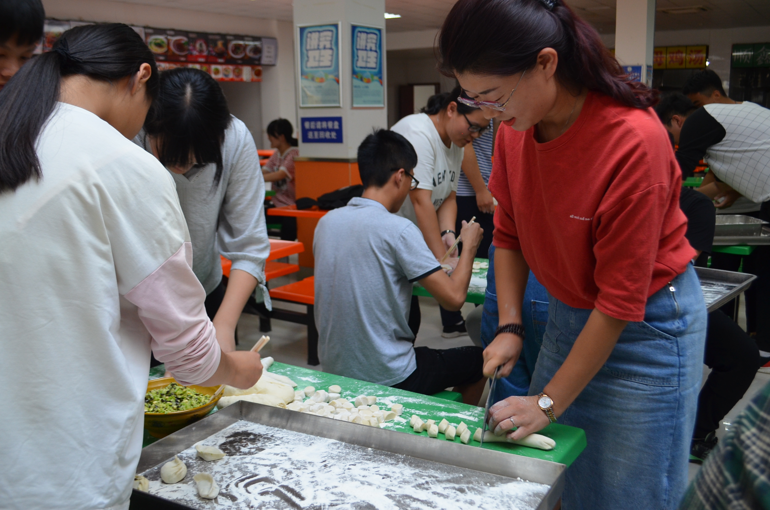 为保证活动顺利,班长等主要学生干部提前联系餐厅工作人员,准备好和好的面团以及肉、素两种饺子馅,下午四点,在班委的带领下,活动有条不紊的开展。班级同学自愿组队,分为七组同时展开,分工明确,进行的如火如荼。技巧与力度要求较高的擀饺子皮挖掘出了班级的“隐形人才”,多种包饺子创意手法惊喜不断,真正意义上逾越传统手工面点工艺;申海滨老师更是身体力行,一会指导学生学习包饺子,一会亲自动手包出一个个精美的水饺,现场车马骈阗,热闹非凡。经过全部同学一个半小时的努力,事先准备好的面团全部包完。班主任申海滨老师表示,此次包水饺活动不仅是为了让同学在中秋假日感受集体温暖,更是增强班级凝聚力、庆祝食1702-1班一周岁生日快乐的绝佳机会。