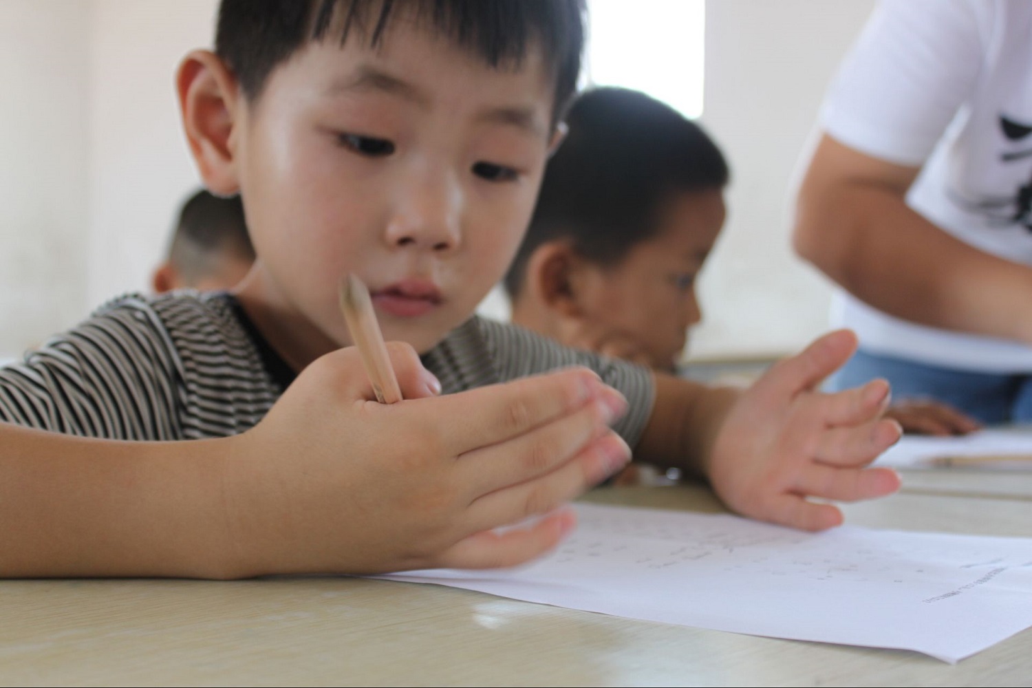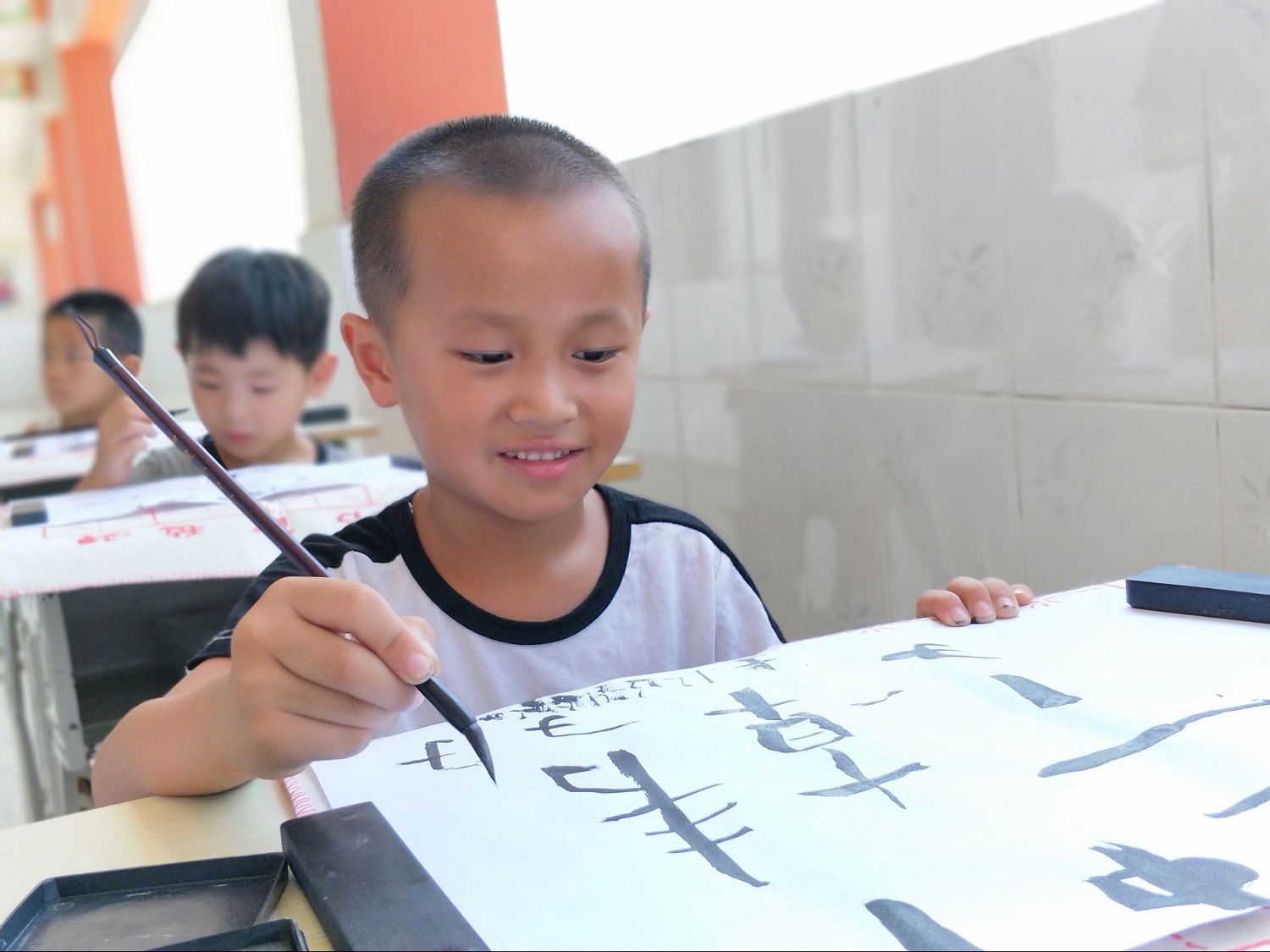 实践活动的第二天,善行小分队首先开展对歌曲《国家》的学习,善行小支队队员郭霖及张洁带着小朋友们熟悉歌词,学习合唱《国家》。当小朋友们唱到“国是我的国,家是我的家”时,我们可以从他们身上明显地看到新一代身上散发的朝气和蓬勃发展的力量。第二节课善行小支队开办了感受传统文化,执笔书墨香的课堂文化活动,队员王玉昊带着小朋友们学习了执毛笔、写书法,孩子们对毛笔这种软笔文化充满好奇,纷纷执笔学着写自己的名字,整个课堂丰富而有趣。