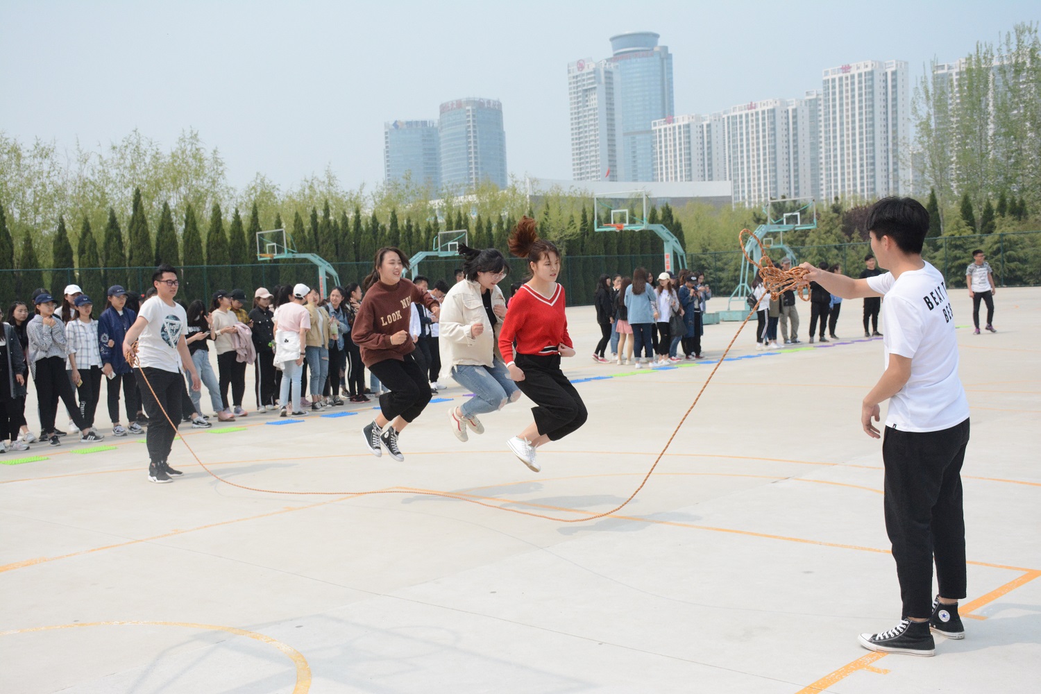 为增强学生体育锻炼意识,丰富校园生活,展现当代大学生精神风貌,促进相互交流。2018年4月26日,烟台大学文经学院会计系于篮球场成功举办了一场以娱乐身心,增进师生情谊为主题的阳光运动嘉年华活动。会计系团总支副书记秦红玉、指导教师裴鹤、于莹雪、张晓云、纪靖欣亲临现场。