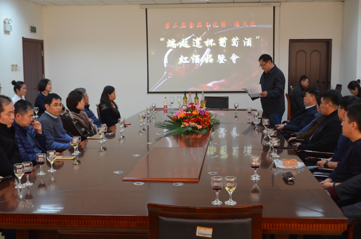 3 月23 日下午,我院第三届食品文化节之酒文化进校园主题活动于二教六楼会议室隆重举行。我院副院长辛连军、院长助理莫红菊、史毅及学院各部门部长、食品系领导及相关老师出席本次活动。