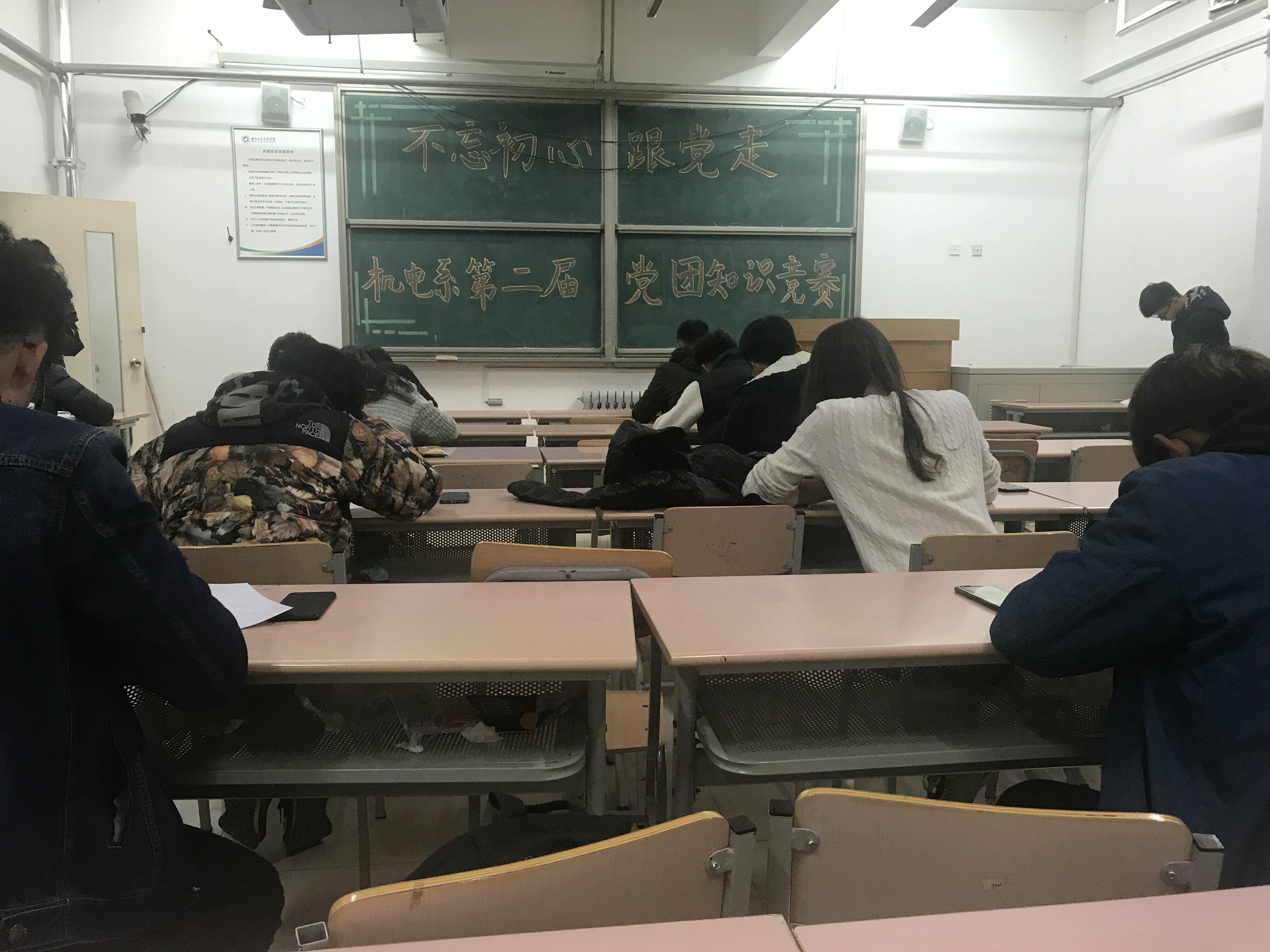 为了更好地引导学生干部深入学习党的基本理论和团的知识,增强党团干部意识。11月22日晚,机电工程系团总支于一教101举办了党团知识竞赛,机电工程系团总支学生干部以及17级全体班委参加了此次竞赛。