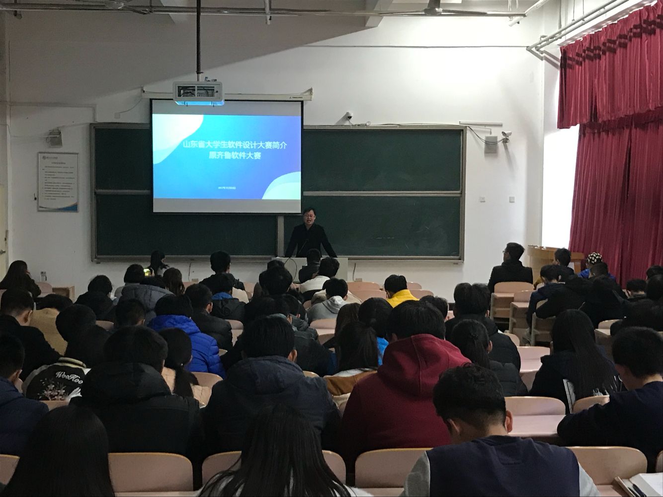为提高大学生动手和编程能力,进一步增强大学生对专业的热爱和学习能力的提升,动员学生积极参加第十六届山东省大学生软件设计大赛,11月23日,我系计算机教研室主办的山东省大学生软件大赛总结暨动员大会于二教110举行。参加大会的有计算机教研室主任高慧老师、曾庆尚老师及第十五届参赛选手代表、16.17级计算机专业全体学生。