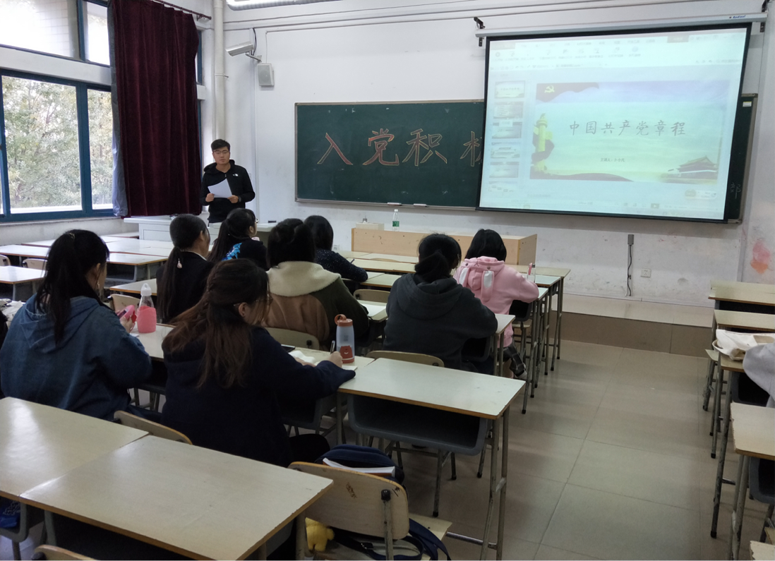 首先,卜老师带领入党积极分子学习了《中国共产党章程》,从十二个方面进行了讲解。其中包括中国共产党的性质、宗旨、党的指导思想、党员必须履行的义务以及享有的权力等知识。在谈到党的指导思想时,卜小凡强调了要以习近平总书记在十九大作的工作报告为指导,要坚持四个意识,拥有四个自信。作为入党积极分子,应多了解和学习党的章程,放宽视野,关注实时政事。