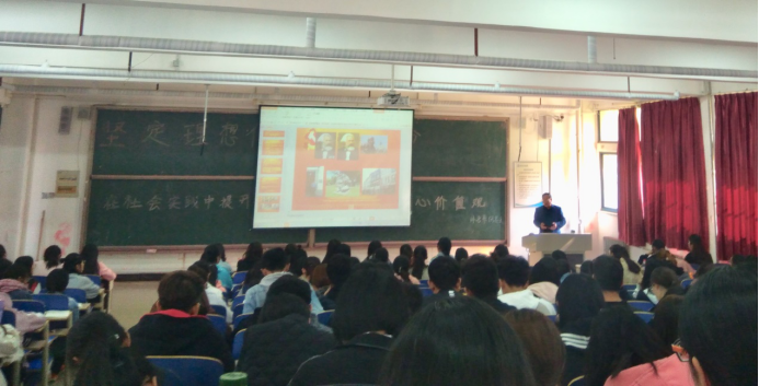 为及时贯彻学习习近平总书记在十九大报告中提出“不忘初心、牢记使命,高举中国特色社会主义伟大旗帜”讲话精神,外语系于10月23日在一教101举办“坚定理想信念、牢记使命、在社会实践中提升大学生社会主义核心价值观”主题党课,此次主题党课的主讲人为外语系党支部书记张廷国教授。