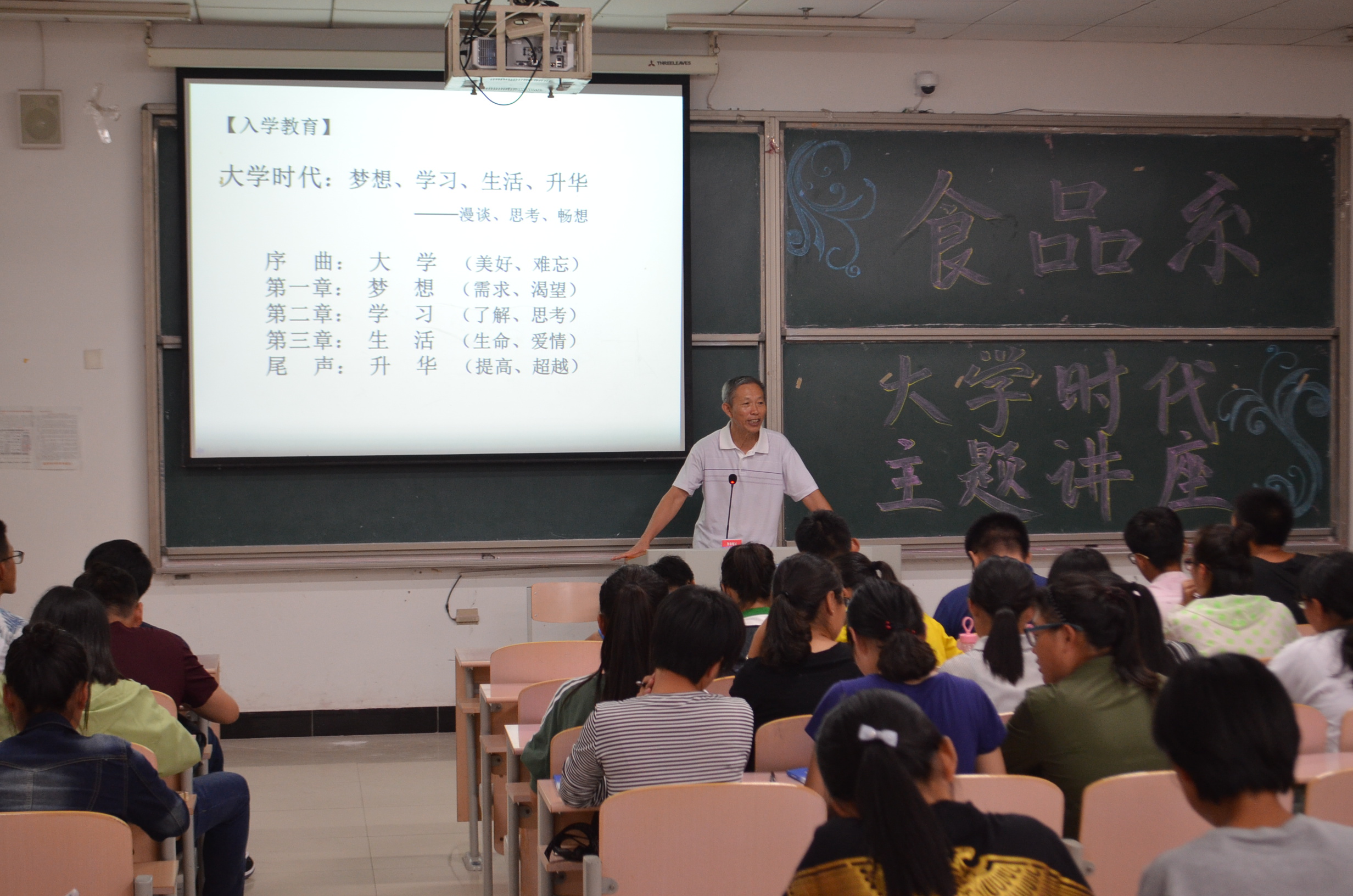 9月15日下午,食品系2017年新生入学教育之“大学时代”主题讲座于二教113教室开讲,杨森老师受邀担任主讲人。食品系团总支书记王晶主持,百余名食品学子聆听讲座。