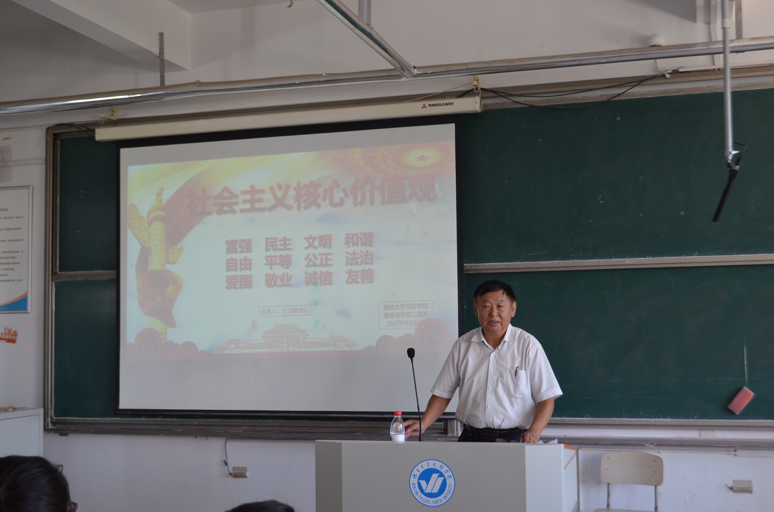 9月16日上午,食品系党支部书记王少辉为2017级新生开展“学习社会主义核心价值观”专题讲座,旨在加深同学们对“社会主义核心价值观”的理解,使同学们的思想认识与行为方式有更深层次的提高。