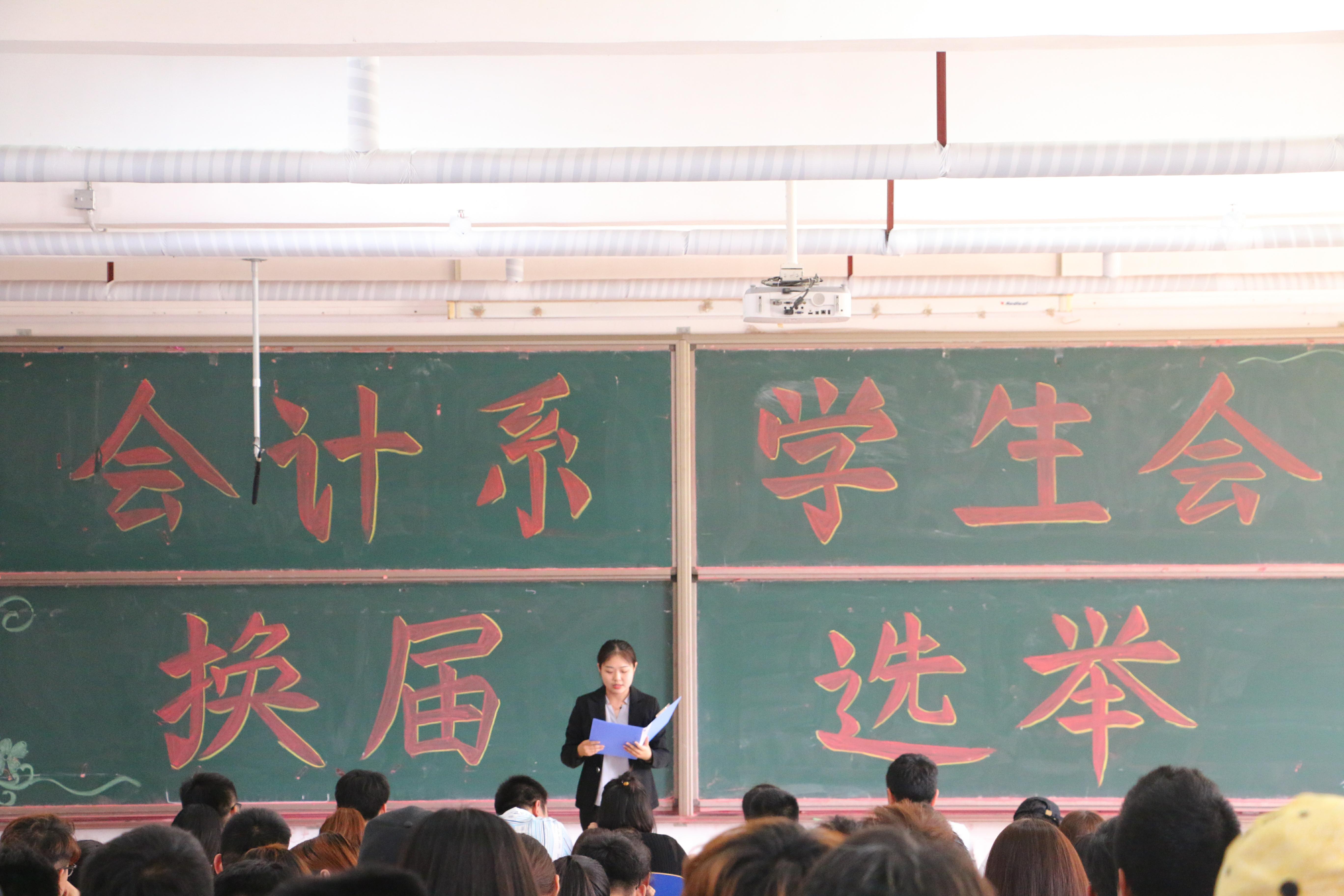 6月19日,会计系学生会换届选举大会在一教101举行。会计系党支部副书记兼团总支书记赵蓓,会计系学生会分管老师张晓云、纪靖欣、周科,会计系学生会主席团及各部部长参加了此次大会。
