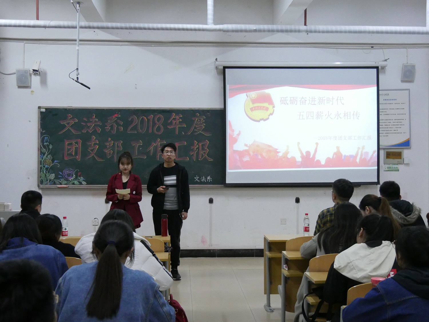 4月1日晚,文法系于一教118举行“砥砺奋进新时代,五四精神永相传”团支部答辩会。