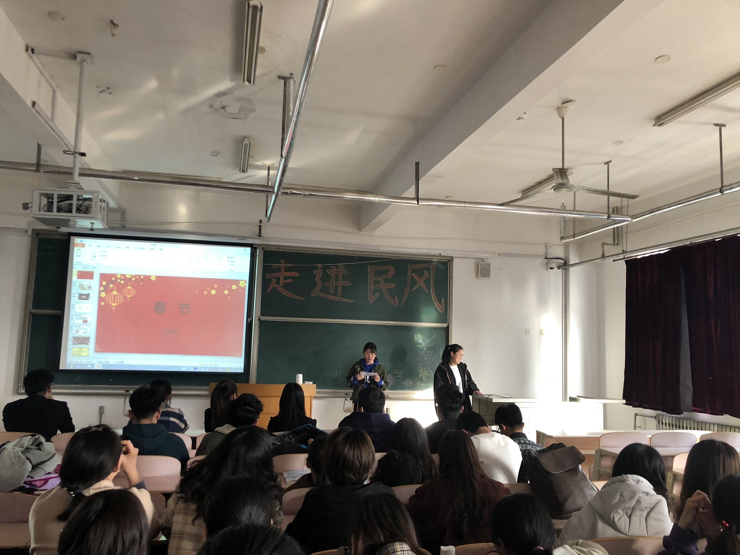为拉近食品系学子与传统文化之间的距离,丰富青年学生的精神生活,培育和树立新颖、文明、生态、健康的传统民俗新风尚,3月21日下午4时,食1803-1班于二教505教室举办"走进民风"主题团日。