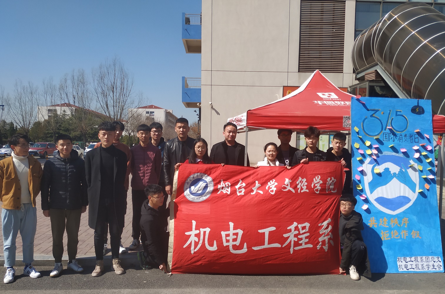 理性消费,合理维权。为提高同学们维权意识,3月13日中午,机电工程系于三餐门口开展消费者权益保护日主题活动。参加本次活动的有机电系团总支书记刘春强老师,团总支指导老师李亮老师及权益部全体成员。