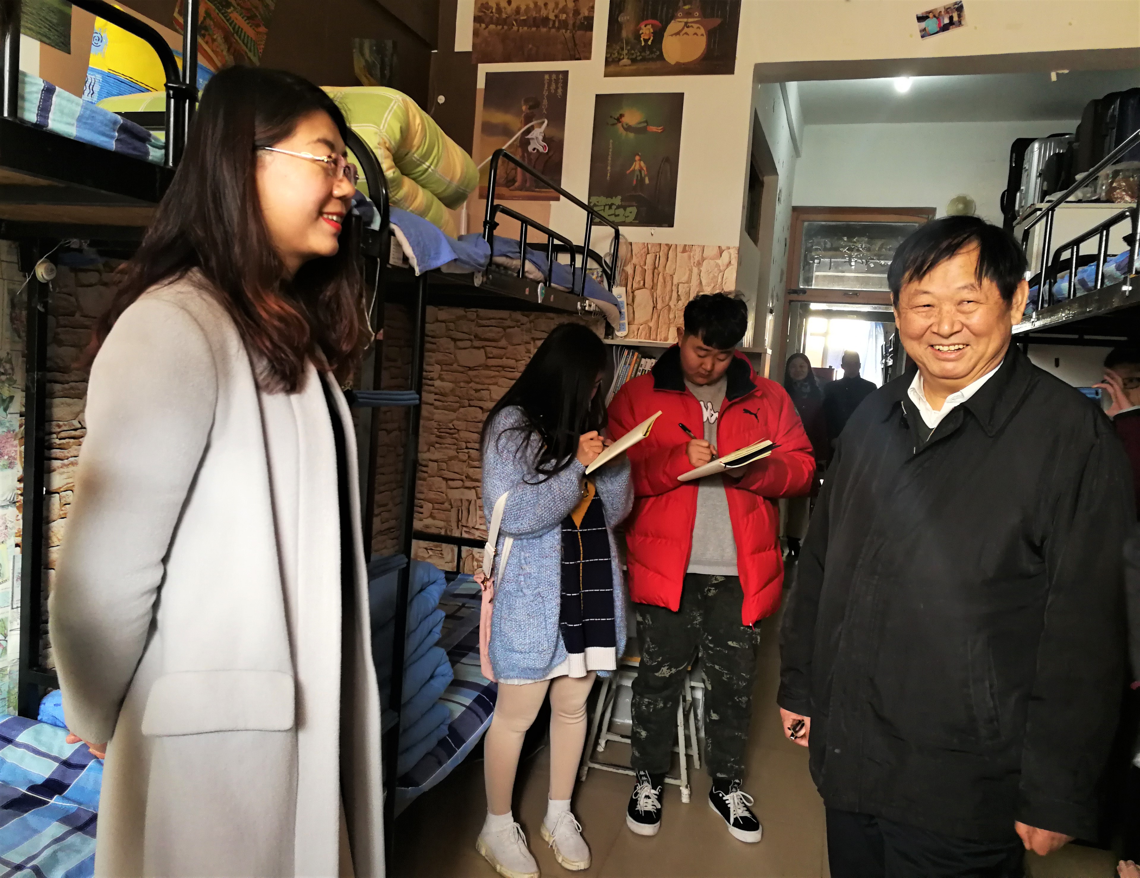 2月26日上午十时,新学期伊始,为贴近学生生活,增进师生间沟通交流,食品系学生工作负责人王少辉带领党总支副书记申海滨、辅导员隋映红等相关人员深入走访学生宿舍。