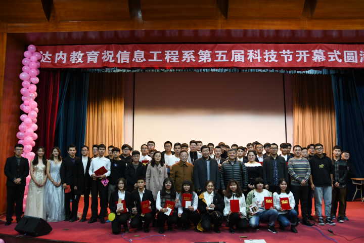 为庆祝改革开放四十周年,培养大学生的科技文化创新思维,充分发挥学科专业优势,不断提升学生创新软实力,信息工程系第五届科技节于11月15日晚六点半在一教207拉开帷幕。达内教育山东区域校园经理臧杨女士,院长助理杜希成、史毅,信息工程系主任宋宜斌等出席开幕式活动,达内臧杨女士,网络中心丰建伟,物联网专业教研室刘松松担任科技节评委。