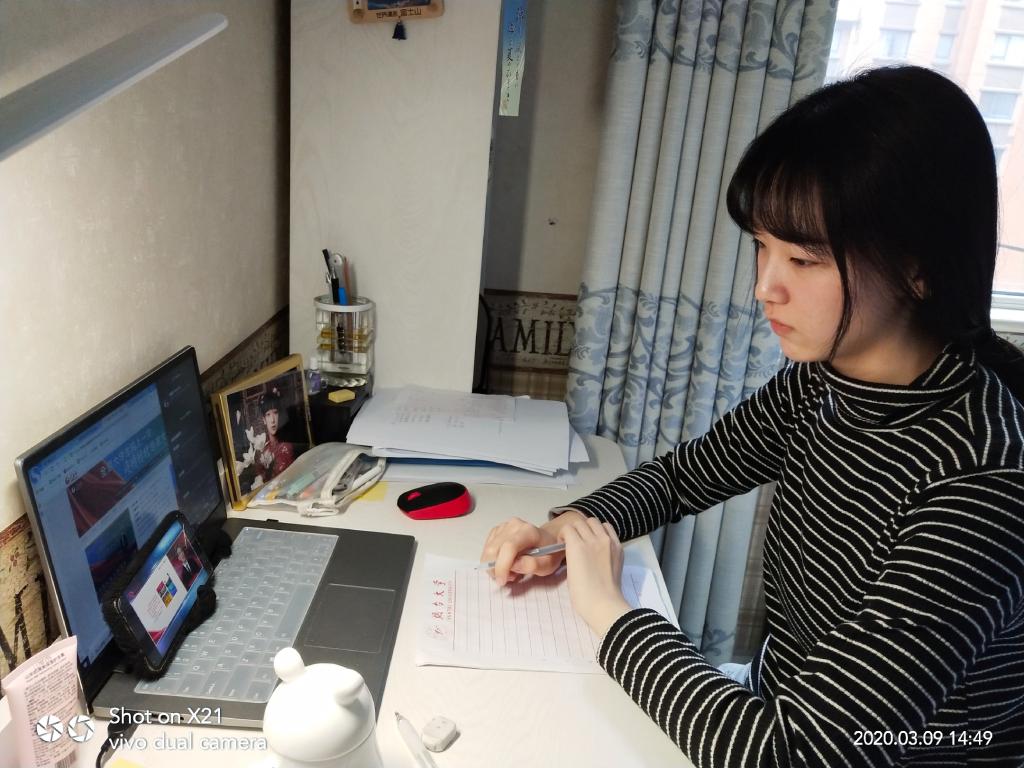 管1904-1印婷瑜同学表示:在这不一样的春天里,我们每一个人都无法将自己置身事外,疫情就是命令,在这场全民战“疫”中,看到了无数奋斗在一线的英雄,其中不乏80后、90后、甚至00后的身影。习总书记曾说过:“青年一代有理想、有本领、有担当,国家就有前途、民族就有希望。”作为一名新时代的大学生,我虽不能亲临主战场,但我可以坚持在疫情防控战役中坚定信心,不负韶华。居家隔离,不聚会,如必要外出戴好口罩,向亲戚朋友宣讲防疫知识,同时多读书多运动,做好力所能及的事,等待春暖花开。