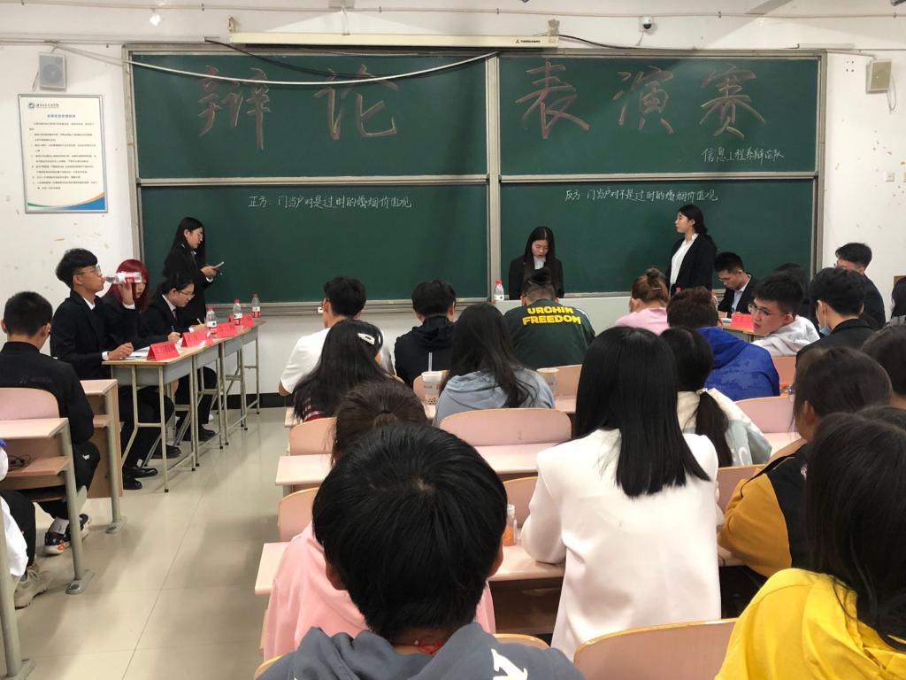 信息工程系新生辩论表演赛于10月7日下午在二教203教室举行。此次辩论赛吸引了同学们的广泛关注。此次辩论赛围绕“门当户对是不是过时的婚姻价值观”这一论题展开辩论。