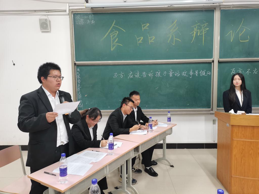 为了培养同学们的逻辑思维能力,加深新生对辩论的认识,10月14日晚7点,食品系于二教505举办辩论表演赛,比赛邀请了会计系、中文与法律系、管理系、建筑工程系、外国语言文学系、信息工程系以及经济系的辩论队代表,20级全体新生参加。