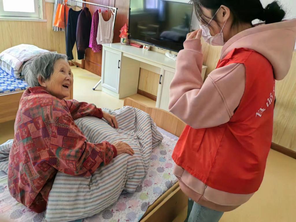 迎着朝霞,志愿者们怀着诚挚之心来到敬老院,陪伴老人谈心、唠家常,进行“歌曲互动”的小游戏,为老人整理内务打扫卫生,给老人们带来温暖与欢乐。同时,在与老人亲切交谈时,倾听老人们讲述个人经历,了解祖国的发展与变化,感受新时代的伟大成就,体会今天来之不易的幸福。同学也把自己在外求学的心情以及自己家乡的变化分享给老人们,让老人们了解到其他地区的生活。屋内暖意融融,活动在大家的欢声笑语中结束,同学们与老人们一一告别,离开了这个充满温情与感动的地方。