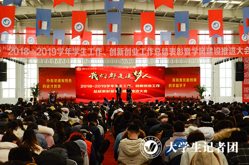12月5日下午,学院2018-2019学年学生工作、创新创业工作总结表彰暨学风建设推进大会在大学生文体中心举行。学院董事长辛军、执行董事曹世民,院领导于光辉、唐家弘、王来武、辛连军、尤敬法、莫红菊、张中华,各系部及相关职能负责人出席会议。