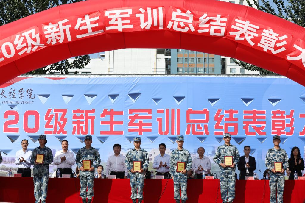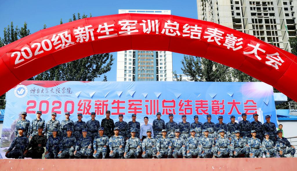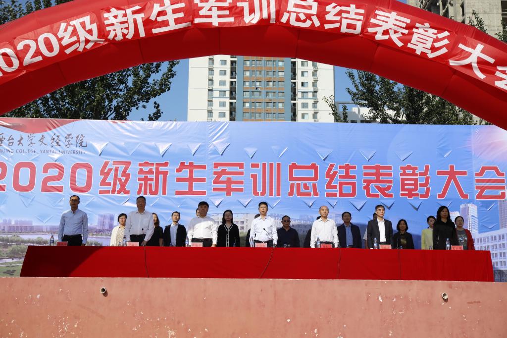 9月30日上午,烟台大学文经学院军训总结表彰大会在操场举行。烟台大学文经学院院长于光辉,党委书记唐家弘,副院长辛连军、王宪杰,院长助理莫红菊、张中华出席大会。学院各系党总支书记、学生工作负责人、2020级新生辅导员、班主任老师参加大会。大会由院长助理尤敬法主持。