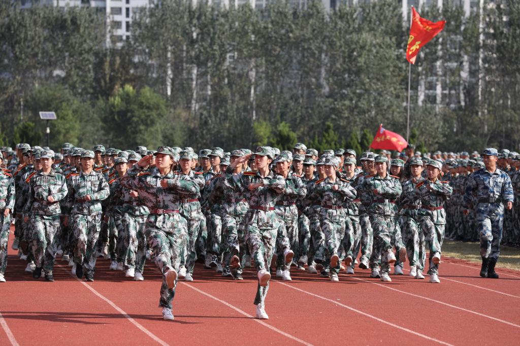 唐家弘书记在总结致辞中向全体施训教官表示感谢和慰问,也向圆满完成军训任务并取得优异成绩的全体2020级新同学致以祝贺。他指出,此次会操表演全面展示了同学们扎实的基本功、严明的纪律性和良好的团队意识,亮出了一张漂亮的军训成绩单。学生通过军训,提高了思想政治领悟,激发了爱国热情,增强了国防观念和安全意识。军训期间,同学们严格按照军训要求,充分展现了当代青年的精神风貌,同学们的飒爽英姿,整齐的步伐,雄壮的口号,嘹亮的歌声,形成一道亮丽的风景线。他希望,广大新生能继续弘扬纪律严明、吃苦耐劳的精神,去探索,去拼搏,去挑战,不断提高自身素质和修养,努力使自己成为社会主义事业合格的建设者和可靠的接班人。