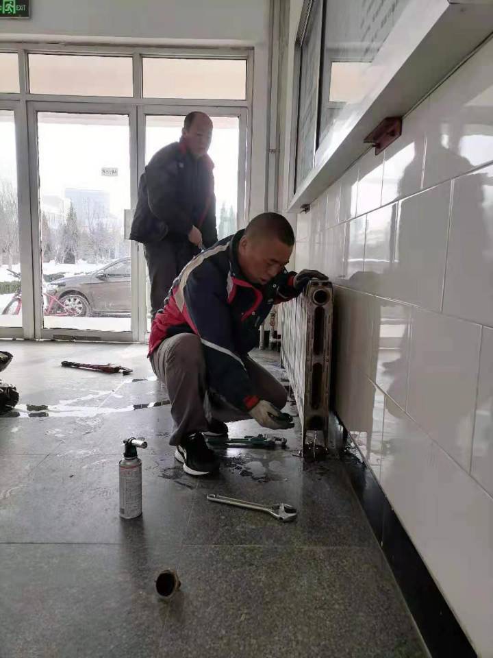 六是做好开学准备,提前做好供暖、供水工作。在开学前一周,后勤部已经着手准备恢复供暖、供水工作。在暖气试压,管道清淤,温度调试,漏水维修等方面做了大量工作。