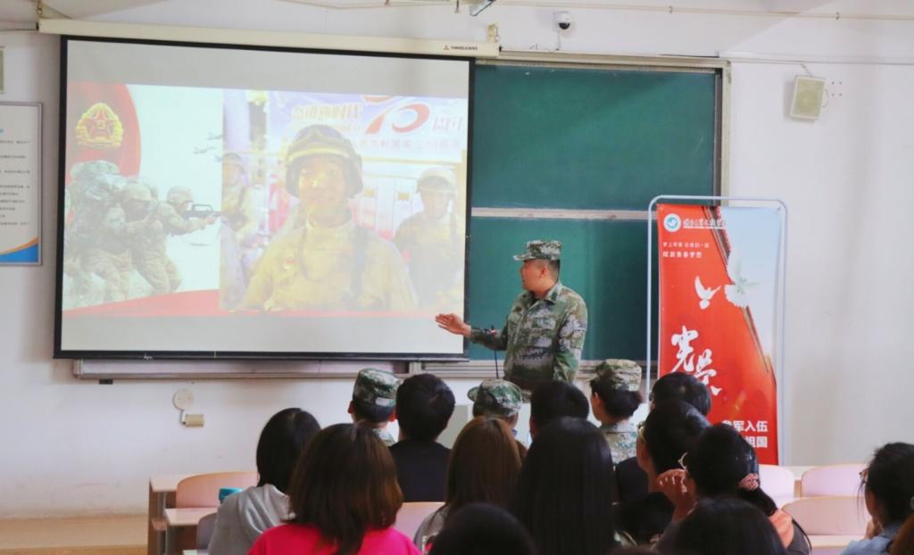 为进一步做好征兵教育宣传工作,激励更多优秀大学生参军报国,5月27日下午,我校于二教202教室举办优秀退役大学生事迹报告会暨征兵宣传咨询会。退役大学生代表孙堃同学担任本次报告会主讲人,烟台理工学院副校长张仁杰、学生工作部(处)人民武装部处长杜娟、人民武装部刘春强以及征兵宣讲团成员参加了此次活动。