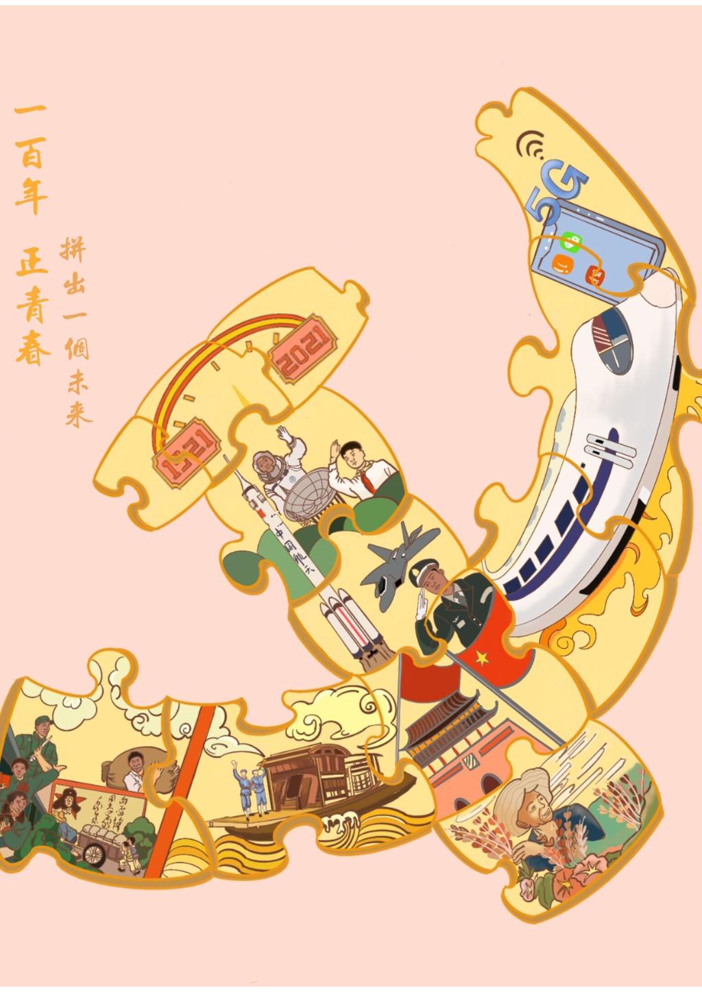 于佳《拼出一个未来》、张美洁《童心向党》、郭艺晗《百年印章》
