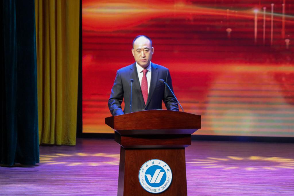 校长于光辉在讲话中表示,学校取得的成绩,首先要感谢董事会的正确领导,特别是董事长多年来办学的情怀以及默默的付出。英雄不只是在舞台上聚光灯下的优秀代表和优秀集体,英雄是每一个我们烟台理工学院的教职员工。在这样一个辞旧迎新的时间节点上,我们既要总结成果和经验,也要谋划未来,考虑2022年我们要去做什么,去怎么做,例如“十四五”规划的高效落实,应用型高校的加快建设,学习型组织的创新建设等长远规划。