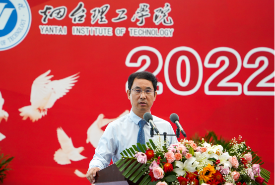 他表示,你们将在这里度过人生最美好的大学生活,收获知识、成就自我、实现价值!新一代的烟理工故事,将由你们来接续书写!他向新同学们提出三点希望,一要志存高远,勇担时代重任;二要不断学习,培养思辨能力,提高创新意识;三要涵养品格,主动融入集体,学会沟通合作。