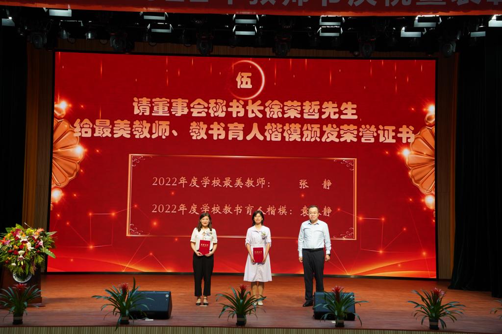 9月9日下午,在第38个教师节来临之际,我校2022年教师节庆祝暨表彰大会在综合楼多功能厅隆重召开,董事长辛军、校长于光辉、校党委书记盛国军、董事会秘书长徐荣哲,校领导苏春景、王培进、张中华、夏毅、莫红菊、李洁、杜娟和教职员工代表与会。大会由副校长王培进主持。
