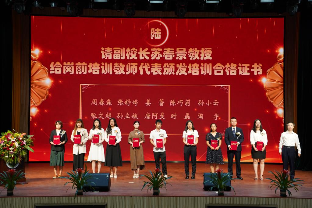 伴随着欢快的音乐声,学校2022年卓越人才、2022年荣获山东省教学竞赛的学校教师、2022年教师教学竞赛获奖选手、学校“最美教师”“教书育人楷模”在大会现场接受表彰,依次走上主席台领奖。新入职教师代表上台领取了岗前培训合格证书。会场内不时响起阵阵掌声,气氛热烈。山东省第九届高校青年教师教学比赛荣获二等奖获得者王亚平老师和青年教师代表徐家南老师在会上发言。