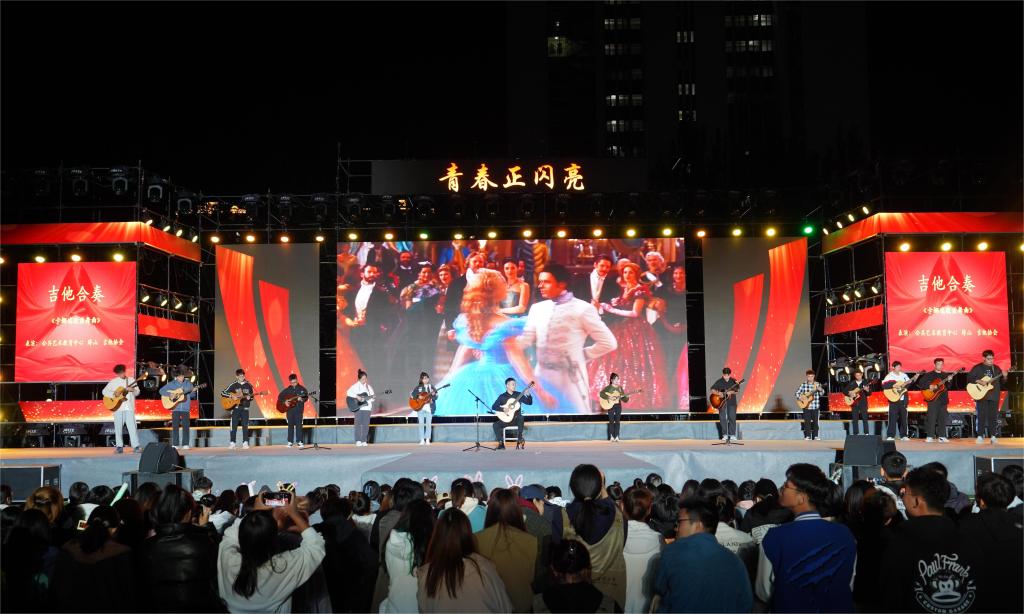 歌舞《年轻的朋友来相会》文法学院师生齐奏,共同放飞欢愉的音符,描绘出对未来的美好期盼;朗诵《中国青年》歌颂一代代国人的无私奉献,发出当代青年的铿锵之声;武术《山河图》结合说唱与中华传统武术元素,收放自如尽显我辈体魄,多方面描绘祖国大好河山;舞蹈《吉祥吉祥》少女们袅娜多姿,亭亭玉立,孔雀开屏般优雅的舞姿令在座师生拍案叫绝;歌舞《我的祖国》用气势恢弘的舞蹈和感情真挚的乐曲描绘出江河帆影漂移、野稻飘香的唯美画卷;器乐合奏《百战成诗》唢呐、古琴等各类乐器在掷地有声的鼓点中相互交融,唤醒现场观众的文化记忆;小品《我的好兄弟》结合当下流行话语,幽默风趣,从不同视角讲述兄弟深厚情谊,引得同学们笑声不断;街舞《火影》热门动漫与舞蹈巧妙融合,使得晚会气氛更加热烈。歌舞《再次相约20年》呼出对未来的希冀,将晚会推向高潮,20岁的同学们风华正茂,烟台理工学院也即将迎来自己的二十岁生日,站在新的征程上,我校将踔厉奋发,以更好成绩书写美好篇章。