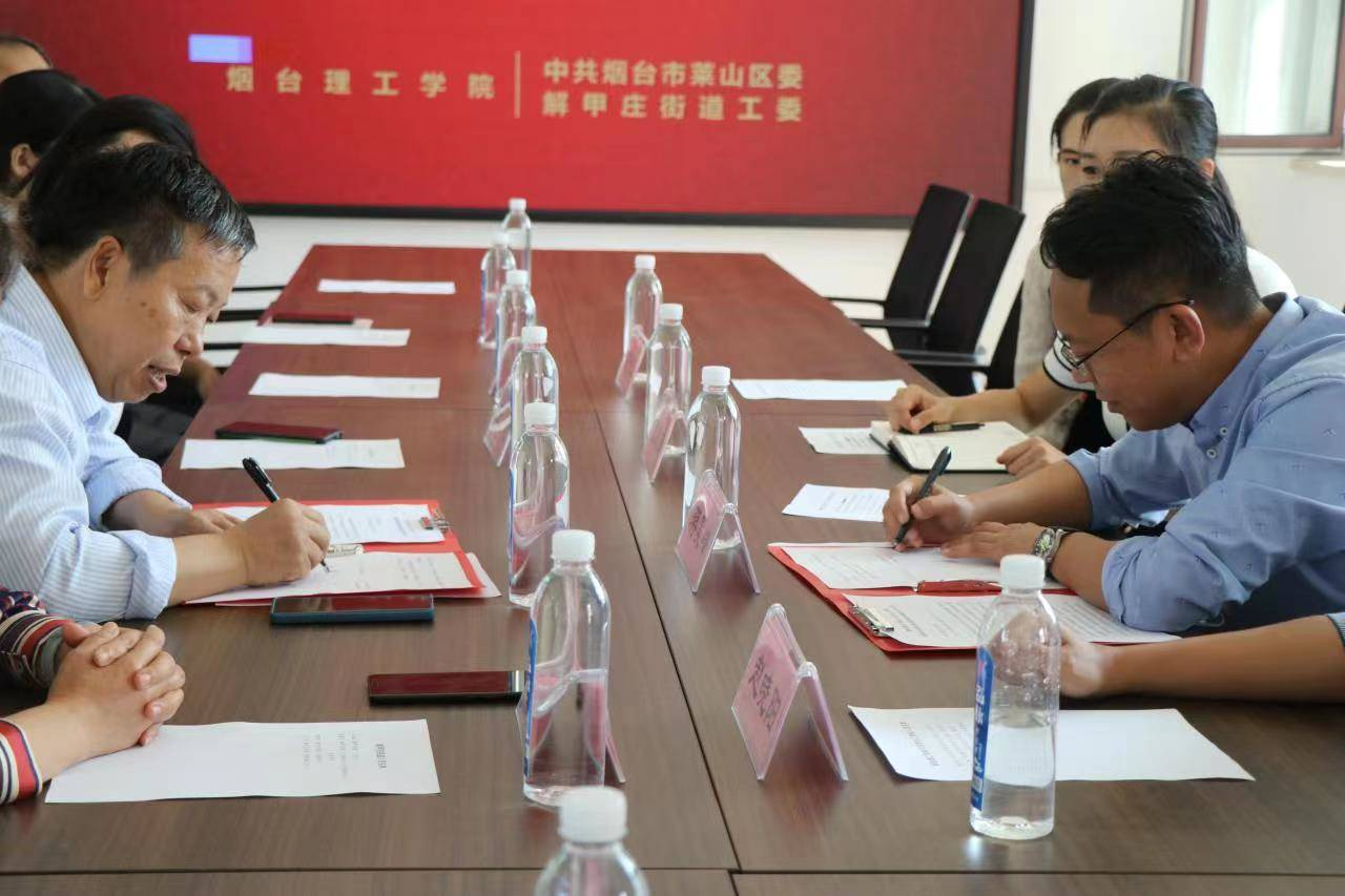 仪式上,解甲庄街道工委书记蒋昊峰对我校马克思主义学院一行的到来表示欢迎,并介绍了近年来解甲庄街道建设发展情况。烟台理工学院党委书记盛国军表示,双方要充分发挥人才、资源、平台优势,深入探讨校地融合、协同育人新模式,实现共同发展。