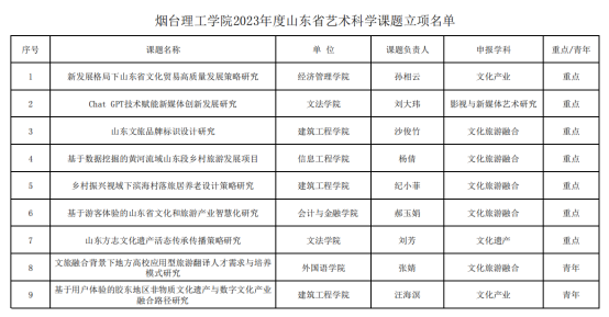 在庆祝建校20周年之际,我校课题立项迎来喜讯,省文化艺术科学协会公布了“2023年度山东省艺术科学重点课题”立项名单,我校7个重点课题、2个青年课题喜获立项。