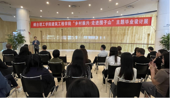 烟台理工学院建筑工程学院“乡村振兴,走进围子山”主题作品展于5月14日上午在烟台城市美术馆顺利开幕。出席此次展览开幕式的嘉宾有烟台市莱山围子山生态美育实践基地顾问、中国高教学会美育专业委员会副会长于文书,烟台市莱山围子山省级自然保护区主任马千信,烟台市莱山区农业农村局局长杨小沛,烟台市莱山区北水桃林村主任林致军,烟台市莱山区大山后村山里友家有限责任公司总经理孙德峰,烟台理工学院校长于光辉,校长助理李洁,建筑工程学院院长辛翠香,全体毕业设计导师及毕业生。