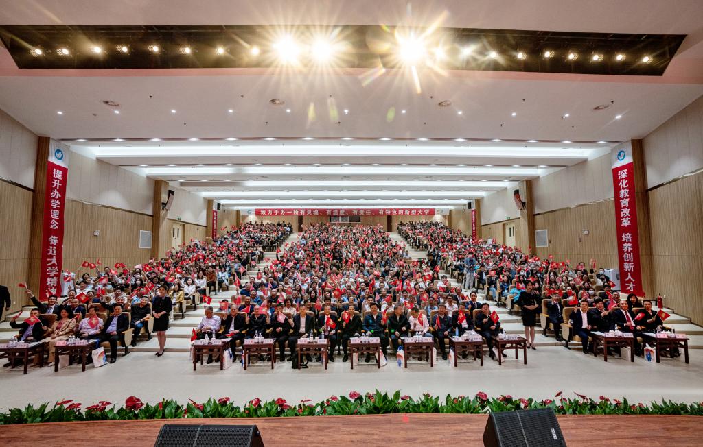 校长于光辉作了题为《不忘初心砥砺前行奋力实现学校高质量发展新跨越》的工作汇报。报告指出,办学20年来,学校发展经历了攻坚克难的依附创设期、强基固本的依托转型期和乘势而上的独立发展期,学校校名经历了从烟台大学文经学院到烟台理工学院的历史变迁;总结了学校在党建思政、办学规模、教学改革、科研与服务社会、师资队伍建设、对外交流、人才培养等方面取得的成绩,展望了学校“三步走”战略的美好前景,表达了对教师、学生、校友和各界人士的美好祝福。他强调,当前和未来一个时期,面对高质量发展重任,我们要以习近平新时代中国特色社会主义思想和党的二十大精神为指引,规范办学、和合发展,坚定“双六”办学思路,培养“重品格、善沟通、能做事、会创新”的高素质应用型人才,努力建设“有灵魂、有温度、有责任、有特色”的国内同类院校水平领先的地方性应用型大学。