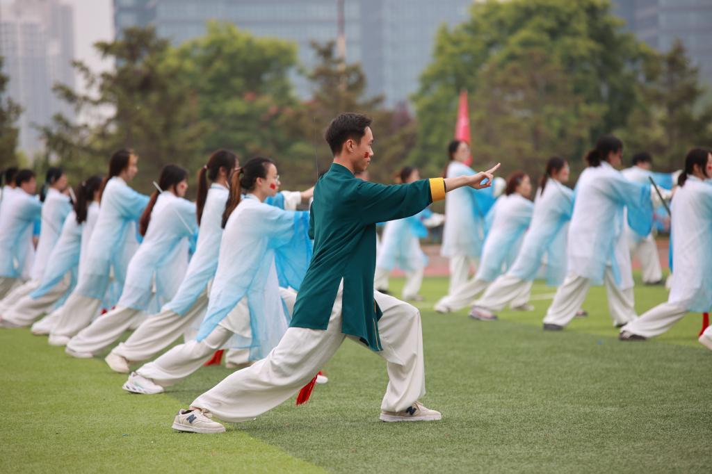 闭幕式上,长拳、太极剑、健美操等综合表演展现出莘莘学子朝气蓬勃的姿态与昂扬的精神风貌,精彩的表演引起全场热烈欢呼,将气氛引向高潮。