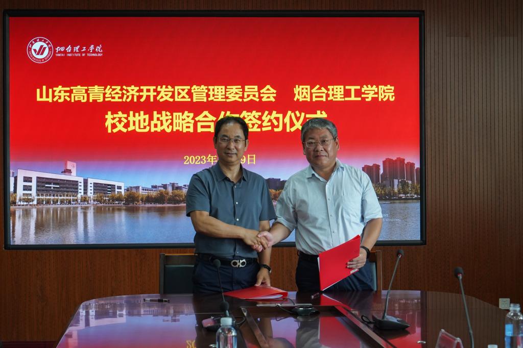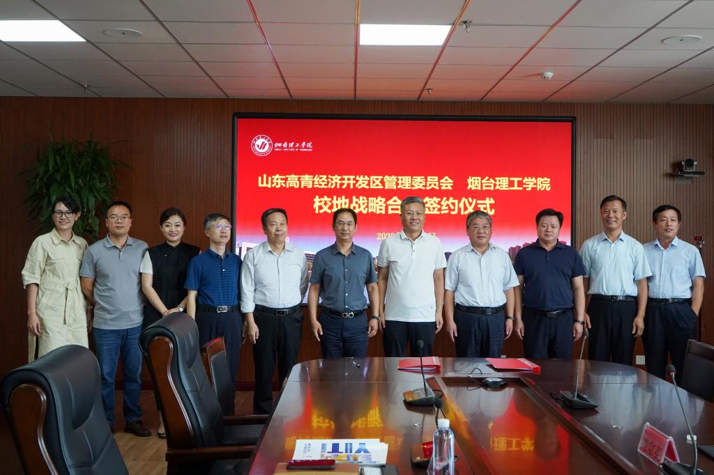 8月29日下午,山东高青经济开发区管理委员会与烟台理工学院战略合作签约仪式在学校综合楼六楼视频会议室举行。高青县委常委、副县长,高青经济开发区党工委书记孙耀祖,高青经济开发区党工委副书记、管委会主任赵学民一行来我校考察交流,校长于光辉,党委书记盛国军,副校长苏春景,校长助理、招生就业处处长李洁及相关二级学院和职能部门负责人与会。