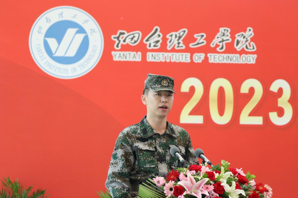 军训教官代表张开源在发言中表示,教官们将与老师和学生度过一段充实而有意义的军训生活,将服从命令,以身作则,科学施训,完成好训练任务。