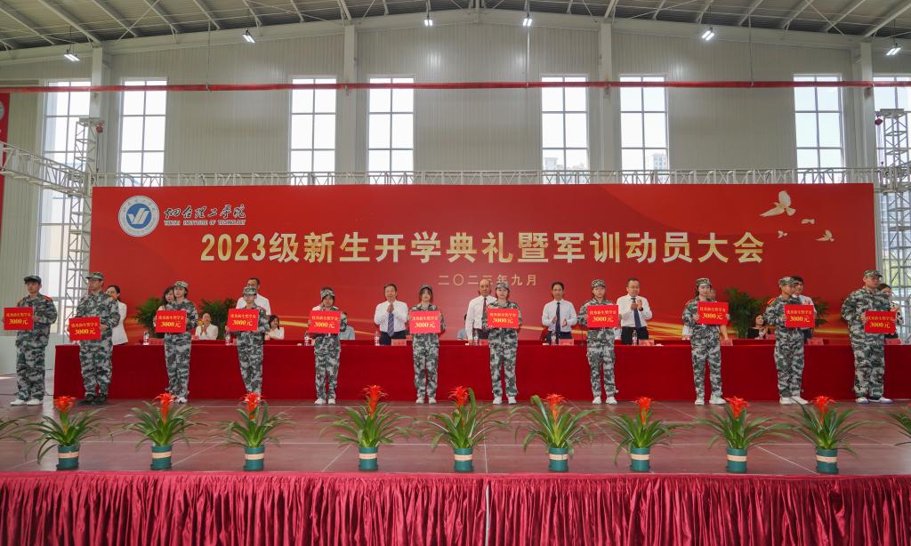 会上,校领导为11名获“优秀新生奖”荣誉称号的新同学颁奖,鼓励大家积极进取,志存高远,通过不懈的努力托起自己人生的理想。