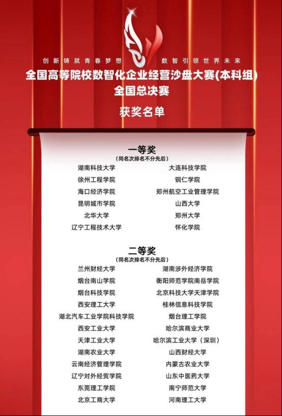 6月10日至11日,会计与金融学院选派程少鹏、朱芳莹、孙文钰、郗文博、卢家淳、田林、王相茹、纪淯珽等8名学生组成两支队伍,在孔令一、朱淑梅、姚禹齐、陆政林、贾盛皓等老师的指导下,代表烟台理工学院赴中国石油大学(华东)参加了第十九届山东省高等院校数智化企业经营沙盘大赛,凭借良好的团队精神,荣获山东省特等奖一项、一等奖一项的优异成绩,并获得参加国家级竞赛的参赛资格。目前,数智化企业经营沙盘大赛全国总决赛已圆满落幕,我校荣获了全国总决赛二等奖的优异成绩,赛出了水平和风格,展现了我校学子“追求卓越、走向成功”的非凡风采。